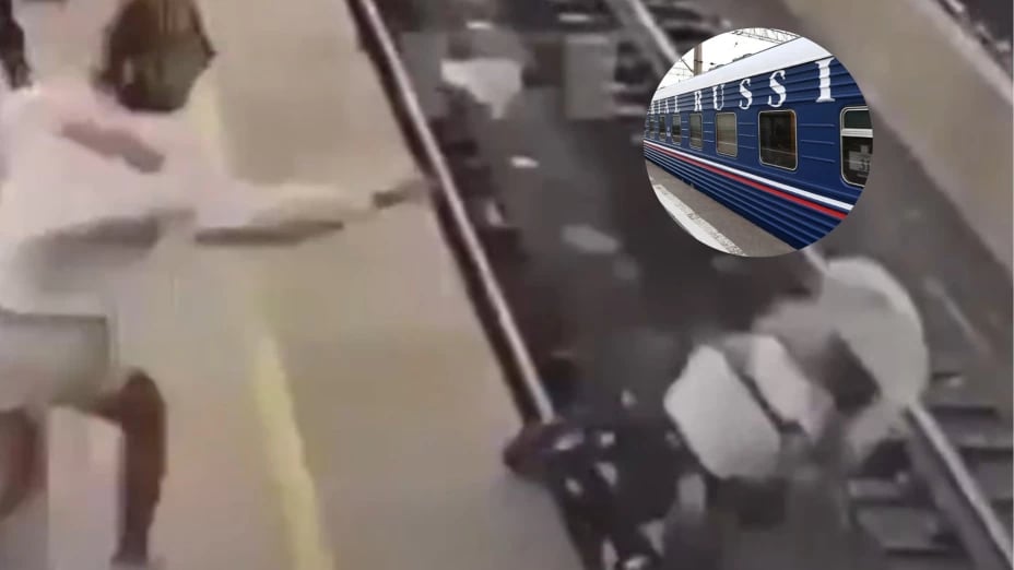 Redacción.- Un momento que pudo terminar en tragedia se registró en una estación ferroviaria de San Petersburgo, Rusia, cuando una carreola cayó a las vías justo segundos antes de que llegara un tren.