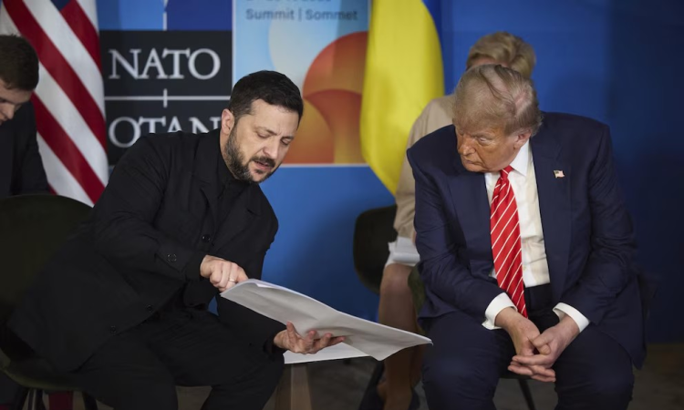 Volodimir Zelensky y Donald Trump SUIZA.- El presidente ucraniano, Volodimir Zelensky, y su homólogo estadounidense, Donald Trump, iniciaron una reunión...