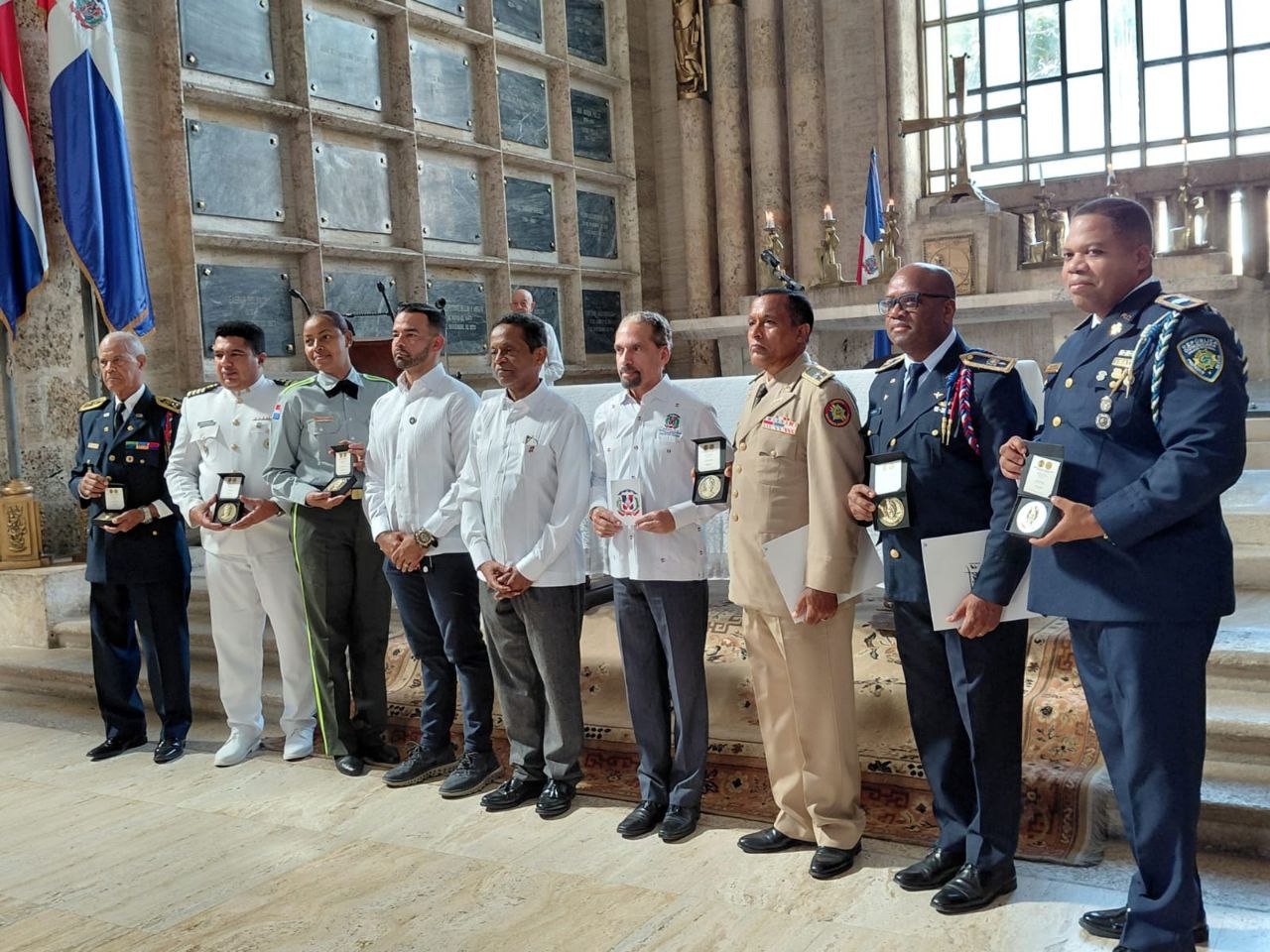 Luego de la eucaristía Gustavo Ubrí, director del Panteón de la Patria y Juan Pablo Uribe, les entregaron a los cuerpos castrenses de las Fuerzas Armadas Dominicana, la medalla conmemorativa de María Trinidad Sánchez, como muestra de gratitud al apoyo incondicional y patriótico de los mismos a los rituales y celebraciones eucarísticas que se han realizado durante el año 2025.