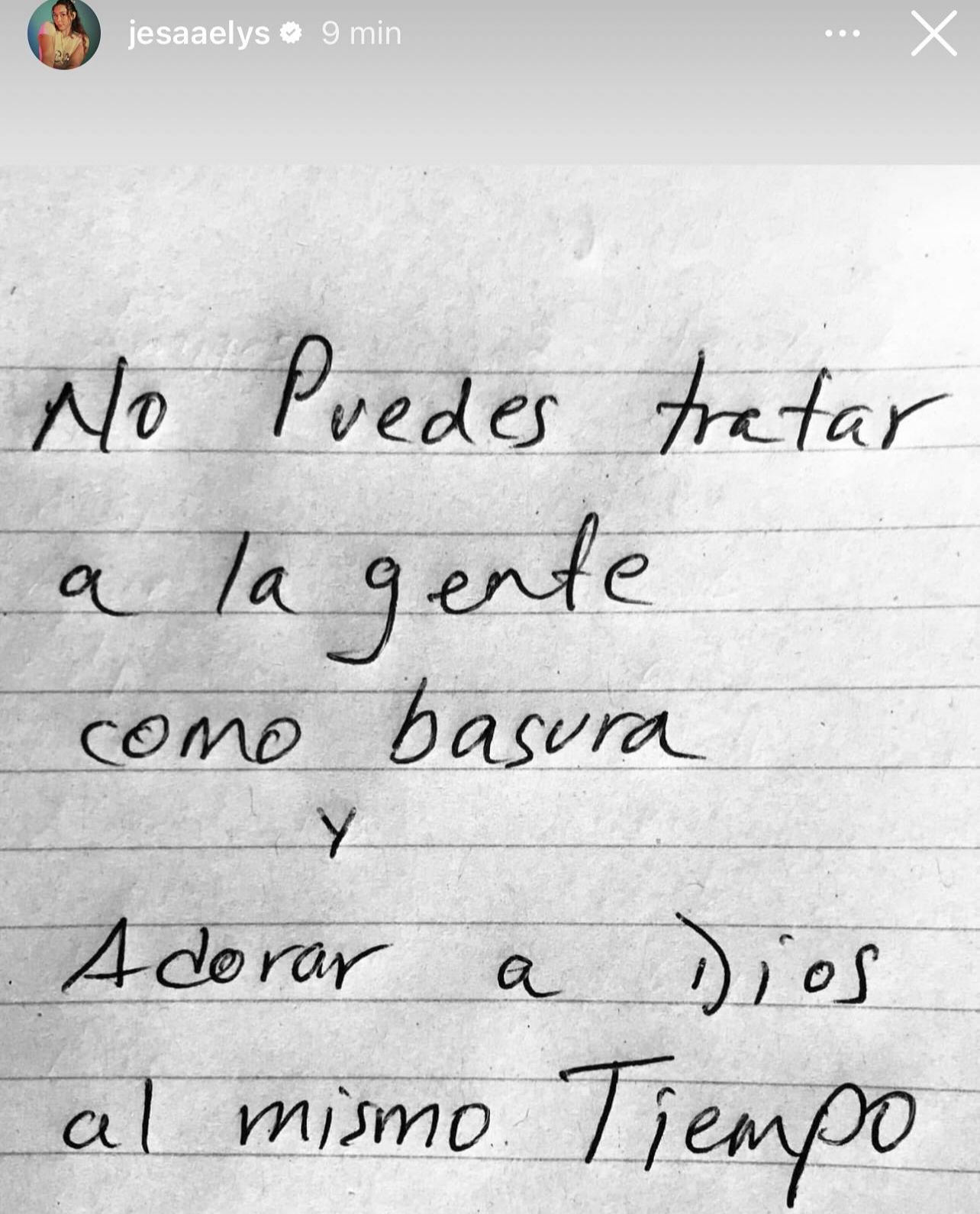 El mensaje fue publicado a través de la cuenta de Instagram de la hija mayor de Daddy Yankee y su expareja. «No puedes tratar a la gente como basura y adorar a Dios al mismo tiempo», escribió Jesaaelys, lo que ha generado controversia debido a la situación legal que involucra a su madre.