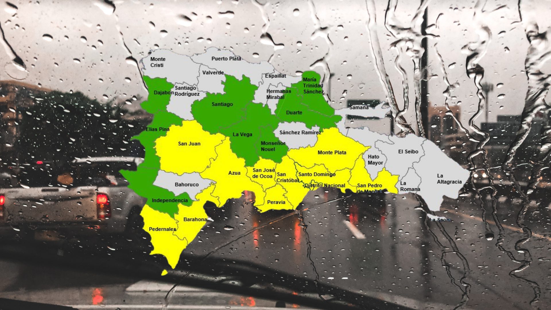 En alerta verde están: Elías Piña, La Vega, Monseñor Nouel, Dajabón, Independencia, Duarte, Santiago, María Trinidad Sánchez.