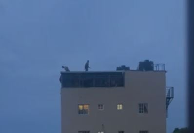 Según informaciones, el hombre habría intentado penetrar una vivienda antes de subir corriendo al edificio. Al lanzarse, cayó sobre el techo de una casa de zinc, provocando un hoyo, y terminó sobre una mujer que estaba acostada, quien supuestamente falleció.