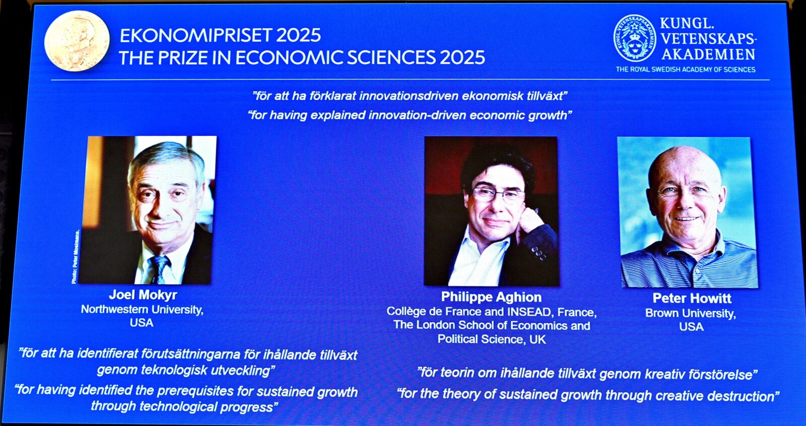 RDÉ DIIGTAL, FRANCIA.- Los economistas Peter Howitt (Canadá) y Philippe Aghion (Francia), junto al historiador económico Joel Mokyr (EE. UU.-Israel), recibieron este lunes el Nobel de Economía 2025. El comité destacó sus aportes para entender cómo la innovación impulsa el desarrollo económico y cómo la destrucción creativa reemplaza tecnologías obsoletas.