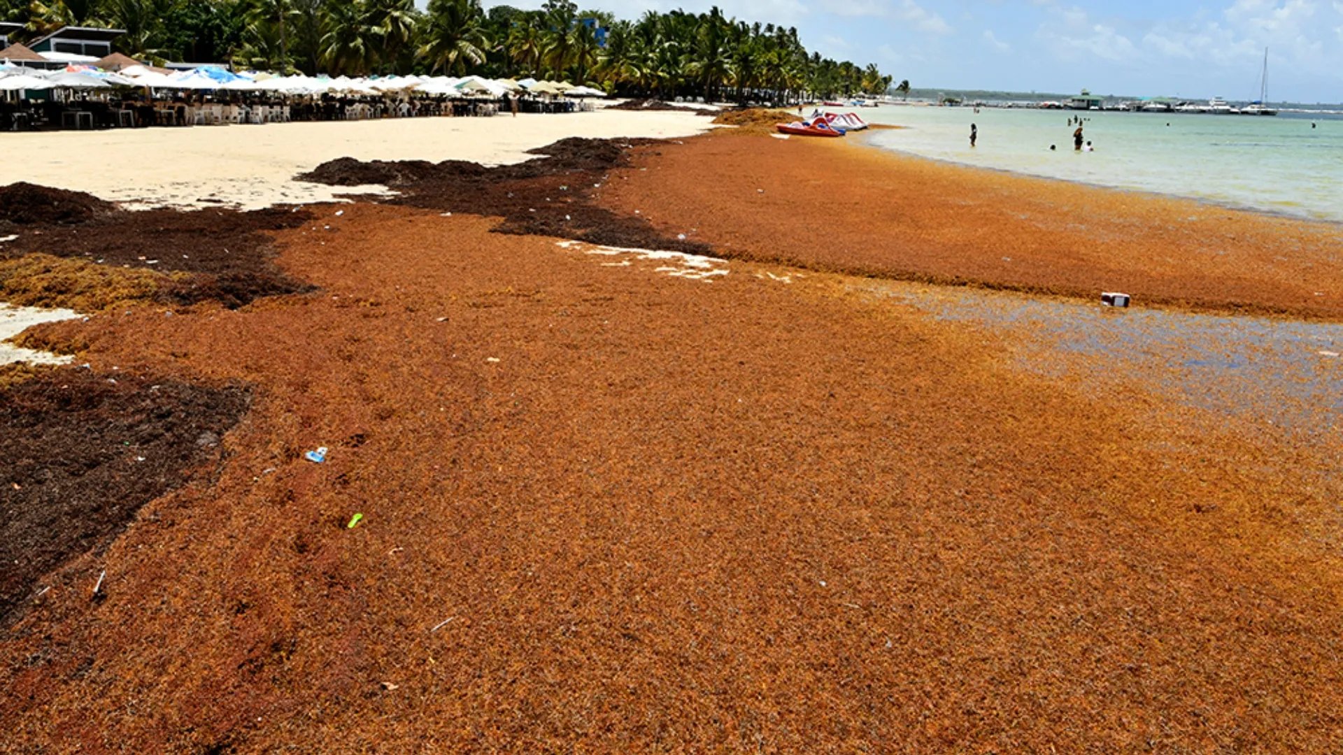 Santo Domingo.- Bañistas y comerciantes expresaron su malestar por las condiciones en que se encuentra actualmente la playa de Boca Chica, donde la acumulación de sargazo, desperdicios, peces muertos y un fuerte hedor impiden el disfrute de sus aguas.