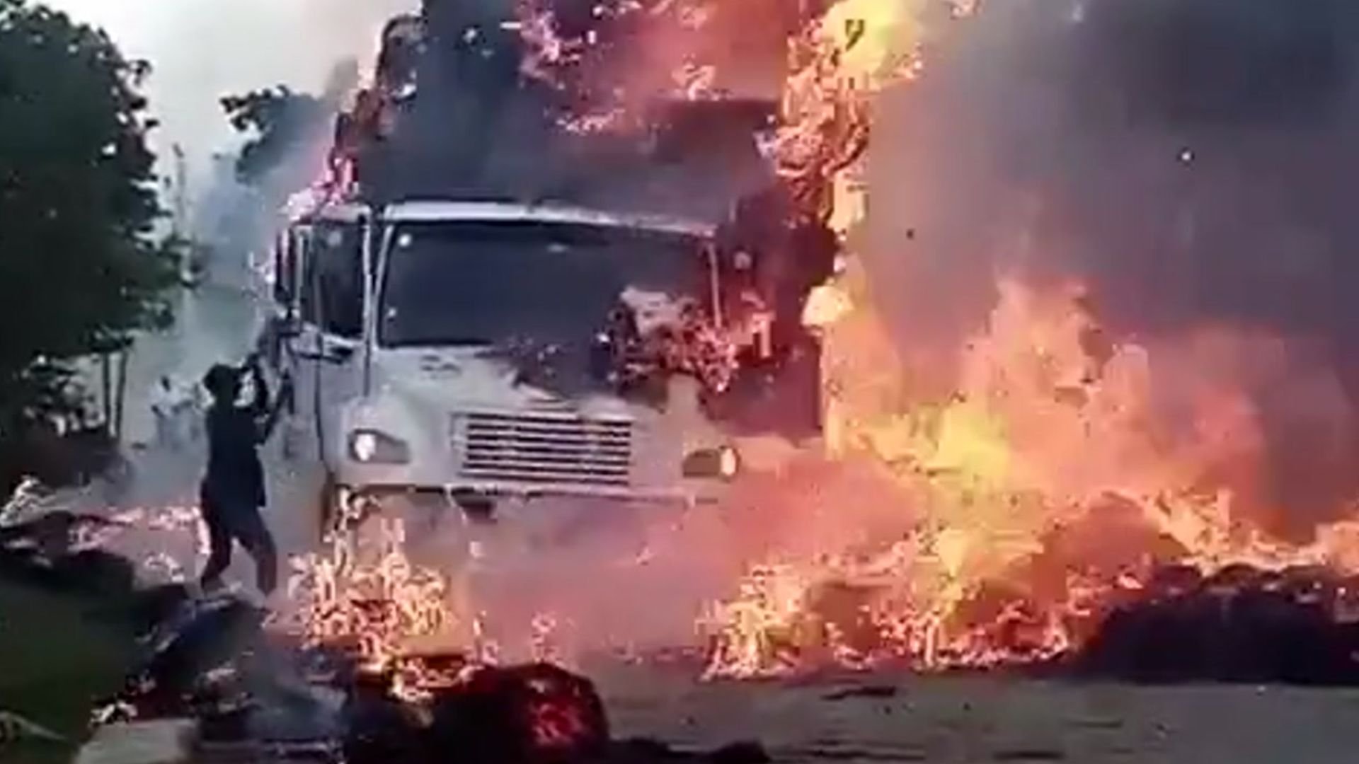 De acuerdo con informaciones, el vehículo transportaba una carga con una altura inusual, lo que provocó que rozara los cables del tendido al desplazarse por la vía. El contacto generó varios cortocircuitos, desencadenando un incendio que rápidamente envolvió el camión.