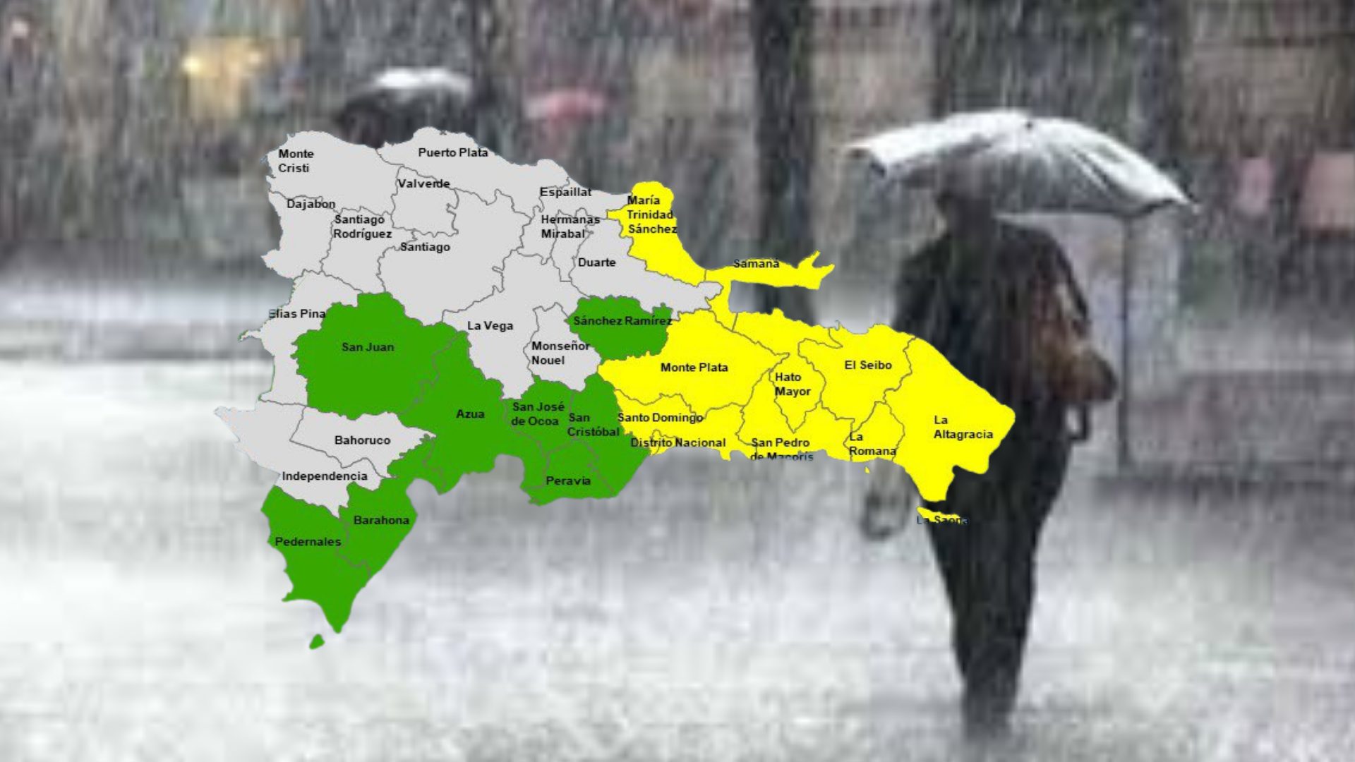 Santo Domingo. -El Centro de Operaciones de Emergencia (COE) aumentó a nueve las provincias y al Distrito Nacional en alerta amarilla y ocho en verde, debido a que el informe del Instituto Dominicano de Meteorología (INDOMET) establece que grandes acumulados de lluvias se esperan en algunas localidades de la República Dominicana.