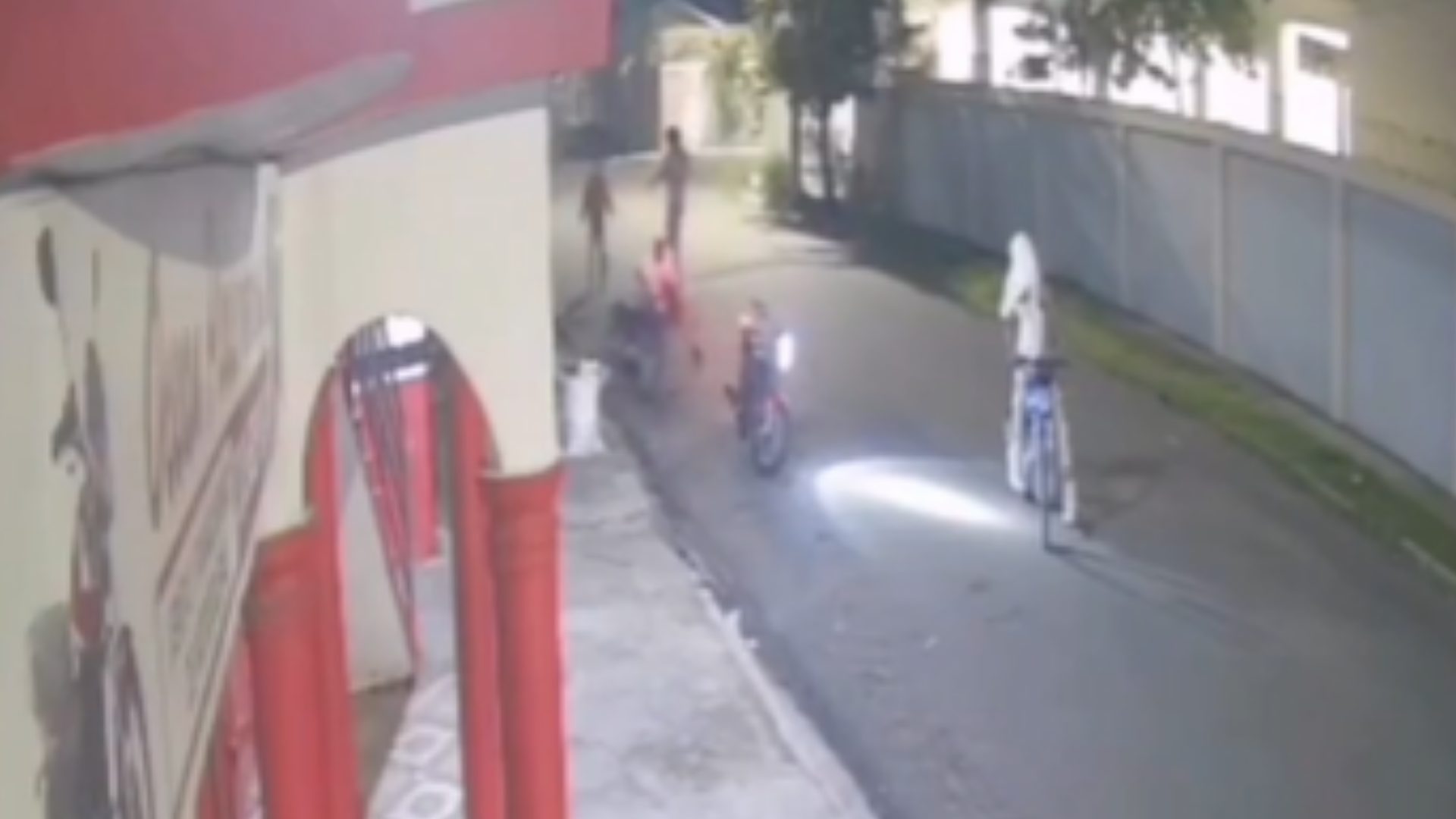 En las imágenes se observa cómo la víctima intenta enfrentar a uno de los asaltantes, generando un breve forcejeo. Sin embargo, los individuos lograron emprender la huida con la motocicleta robada.