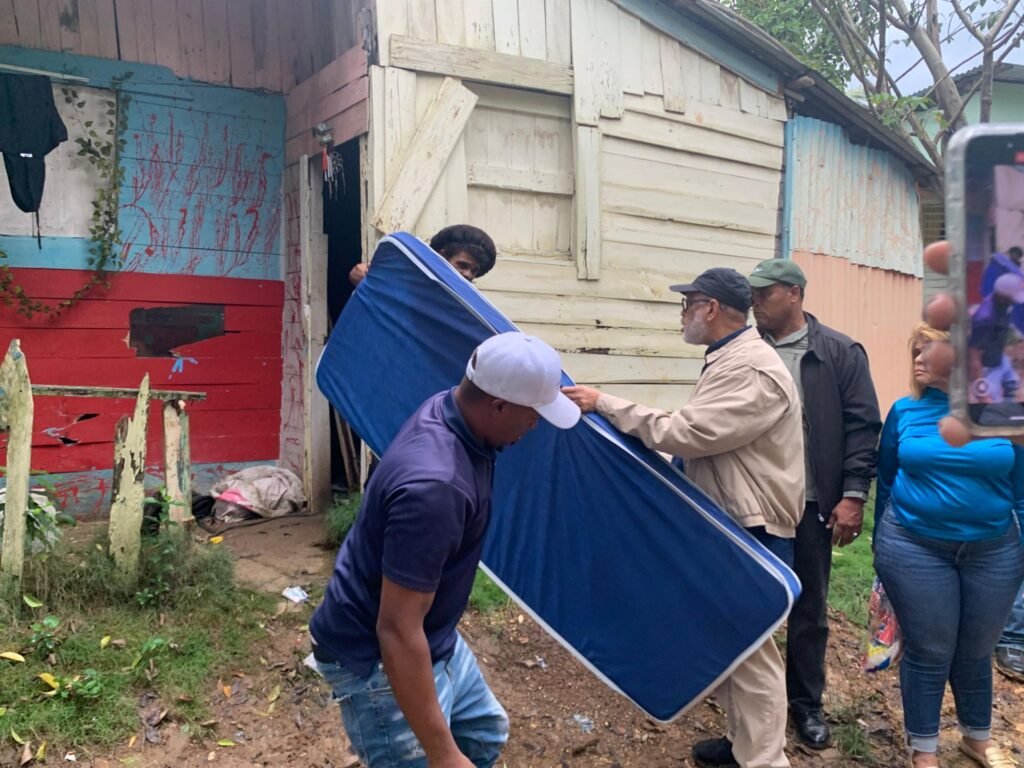 El director general de Desarrollo de la Comunidad, doctor Modesto Guzmán, entregó, casa por casa, raciones de comida, mosquiteros, colchonetas y otros insumos y materiales.