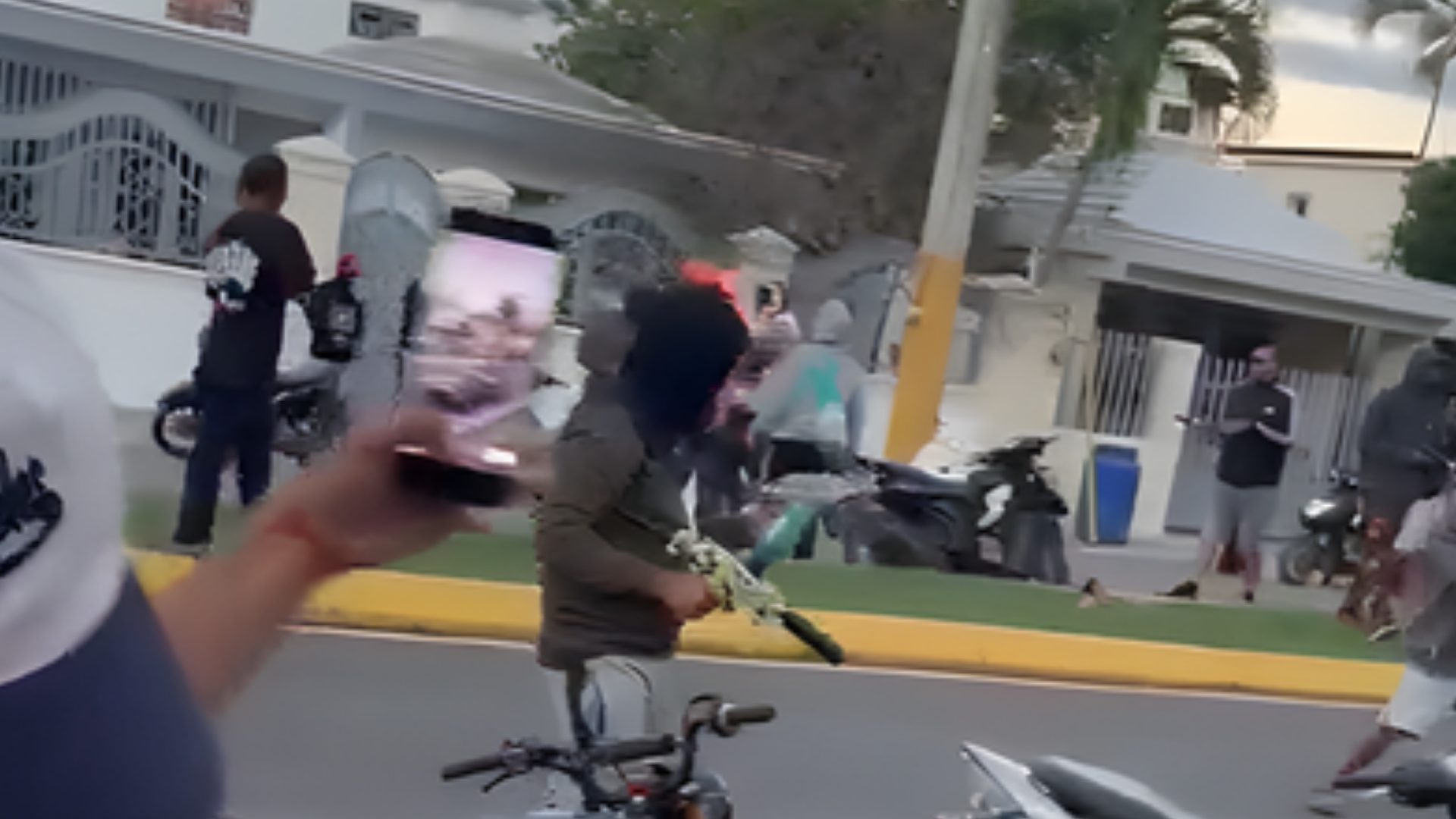 En el audiovisual se observa cómo varios adolescentes encapuchados aparentan una pelea entre ellos lanzando disparos con las armas artificiales.