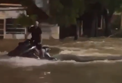 VIDEO: Tormenta Melissa inunda calles del GSD y los dominicanos se lanzan a hacer piruetas en jet ski